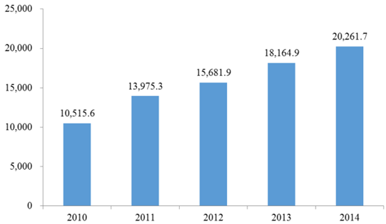 2010-2014 年中國食品制造業銷售收入